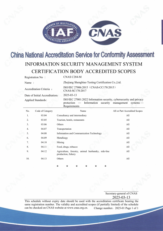 CNAS管理體系認證機構認可證書(shū) 英文版本 - 信息安全管理體系 :